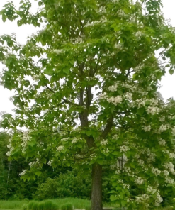 Le Catalpa speciosa, connu sous le nom de Catalpa de l’Ouest, est disponible chez Jardin Dion au Québec. Arborant de grandes feuilles en forme de cœur et des fleurs spectaculaires en grappes, cet arbre ornemental ajoute une touche exotique à tout aménagement paysager. Pour une culture réussie au Québec, privilégiez un sol bien drainé et une exposition ensoleillée. Résistant aux maladies, le Catalpa de l’Ouest offre un entretien facile. Son port étalé en fait un choix idéal pour l’ombre estivale. En plus de son attrait visuel, il attire les papillons, contribuant ainsi à la biodiversité locale.