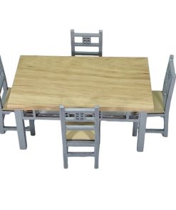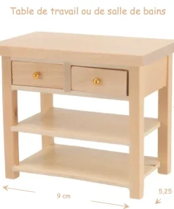 La peinture blanche valorise la texture naturelle du bois, tandis que le tissu de l’assise et du dossier crée un accueil doux et invitant pour les poupées.