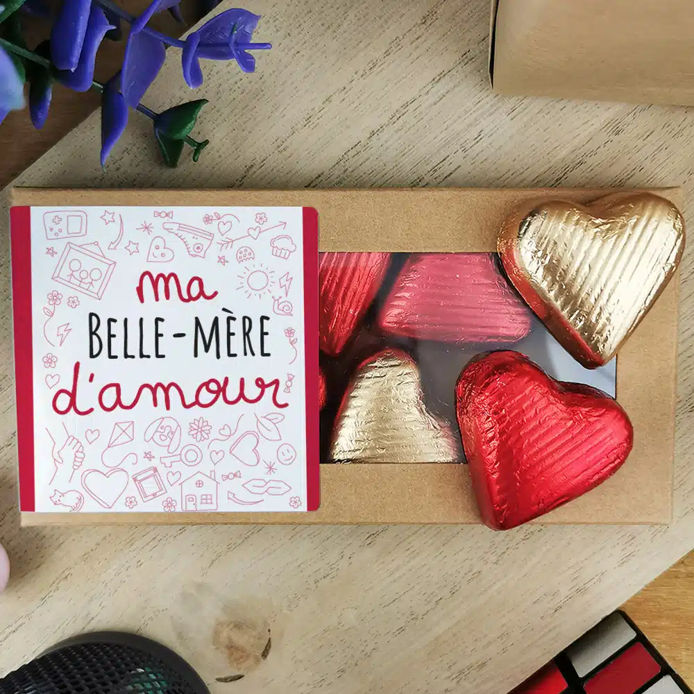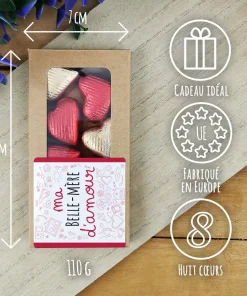 Offrez un cadeau qui reste pour belle mere au joli design et délicieusement gourmand avec ces chocolats laits et pralinés. De quoi faire fondre la personne à qui vous voulez l’offrir !