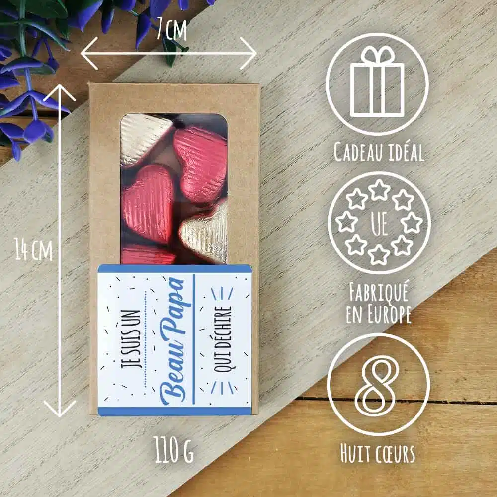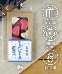 Cœurs au chocolat au lait et chocolat noir praliné x8 “Je suis un Beau Papa qui déchire”