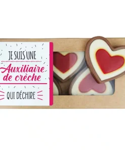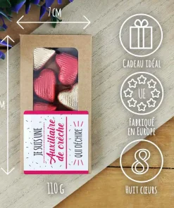 Cœurs au chocolat au lait et chocolat noir praliné x8 “Je suis une Auxiliaire de crèche qui déchire”