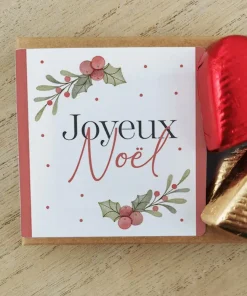 – Packaging : Boîte cartonnée avec fenêtre plastifiée et autocollant avec l’inscription Joyeux Noël aux couleurs vert et rouge