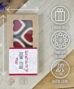 Offrez un cadeau qui reste pour belle mere gourmand et délicieusement pour fêter un anniversaire ou Noël avec ces chocolats laits en forme de coeur. De quoi faire fondre la personne à qui vous voulez l’offrir !