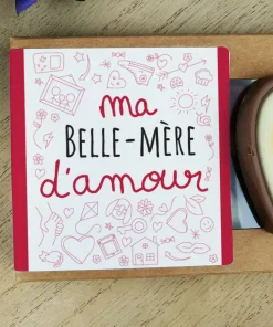 – Packaging : Boîte cartonnée avec fenêtre plastifiée et autocollant avec le texte Belle-mère d’amour aux couleurs rouge.