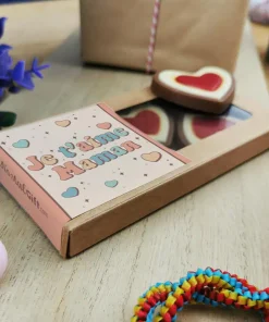 Cœurs au chocolat au lait rouge et blanc x4 “Je t’aime maman”