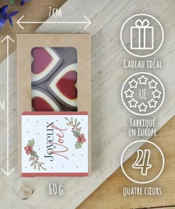 Offrez un cadeau gourmand et délicieusement pour Noël avec ces chocolats laits en forme de coeur. De quoi faire fondre la personne à qui vous voulez l’offrir !