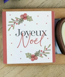 – Packaging : Boîte cartonnée avec fenêtre plastifiée et autocollant avec le texte “Joyeux Noël” aux couleurs vert et rouge.