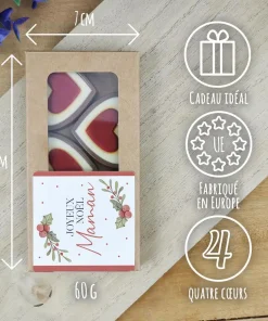 Offrez un cadeau de Noël qui fait plaisir pour maman gourmand et délicieusement pour Noël avec ces chocolats laits en forme de coeur. De quoi faire fondre la personne à qui vous voulez l’offrir !