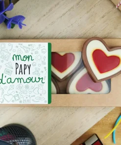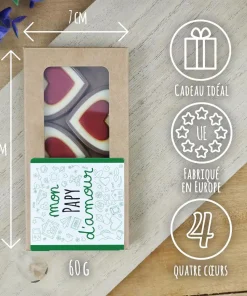 Offrez un cadeau rétro pour papy gourmand et délicieusement pour la fête des grands pères ou fêter un anniversaire avec ces chocolats laits en forme de coeur. De quoi faire fondre la personne à qui vous voulez l’offrir !
