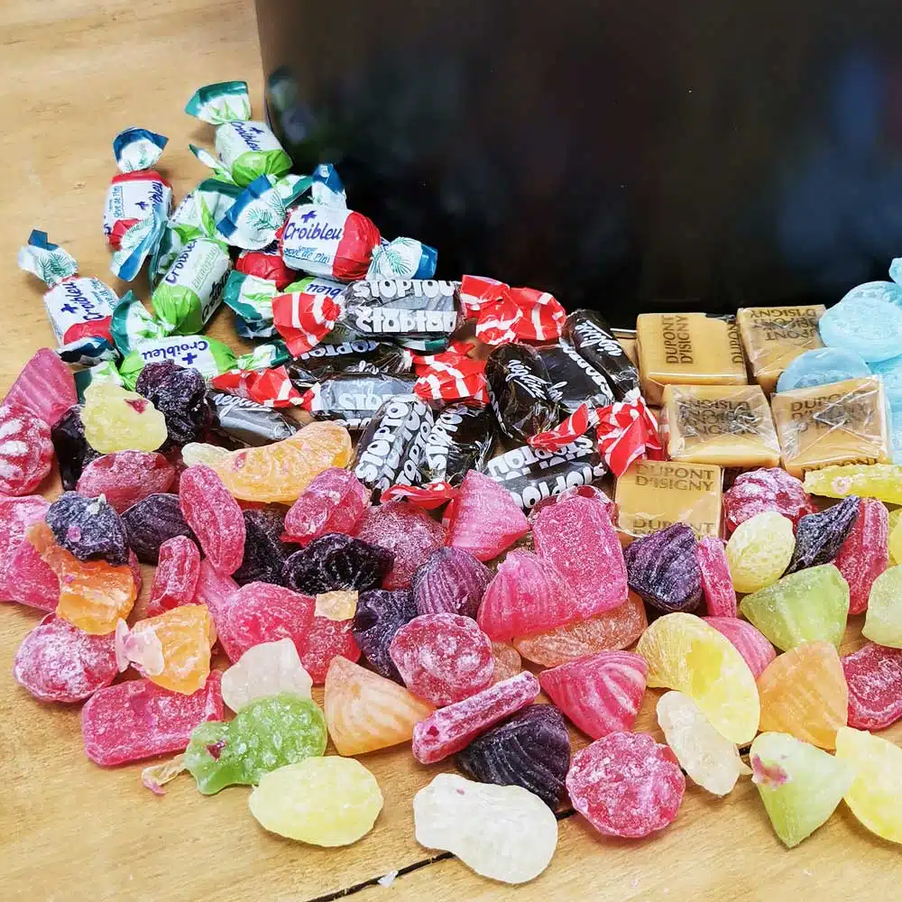 - 150g de bonbons anciens (mix de bonbons parmi berlingot, coquelicot, pastille de menthe, mures, violettes…)