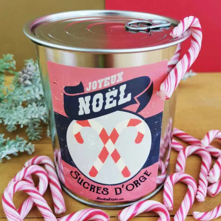 Le coffret cadeau bonbons sucre d’orge est livré dans une boîte de conserve, un concept super original qui plaira à coup sûr!