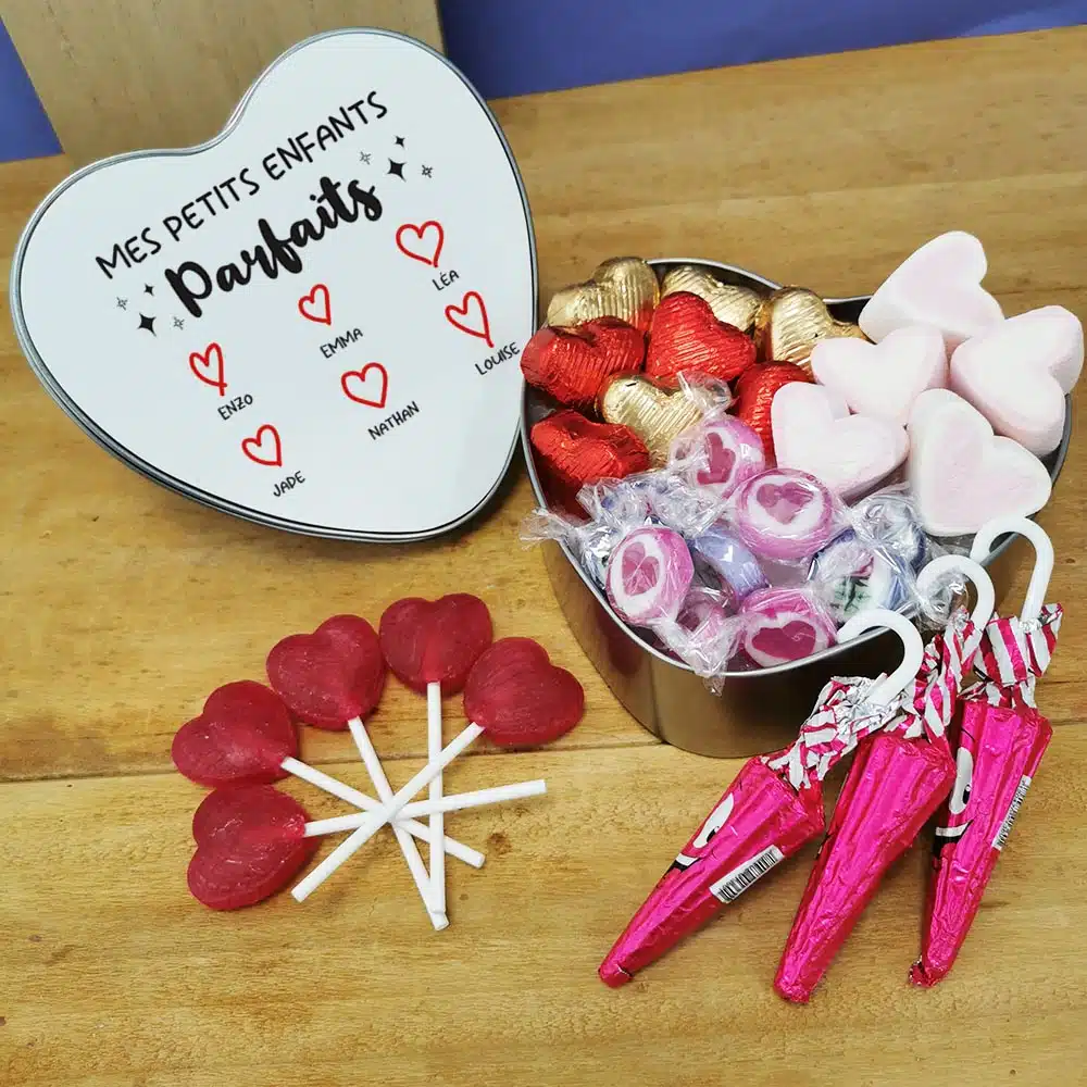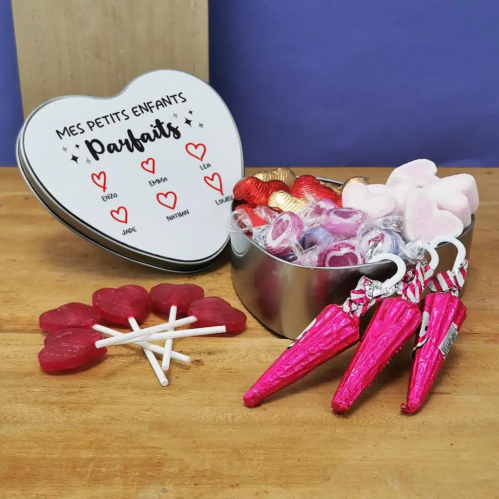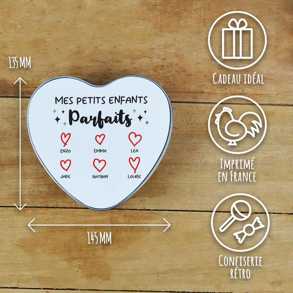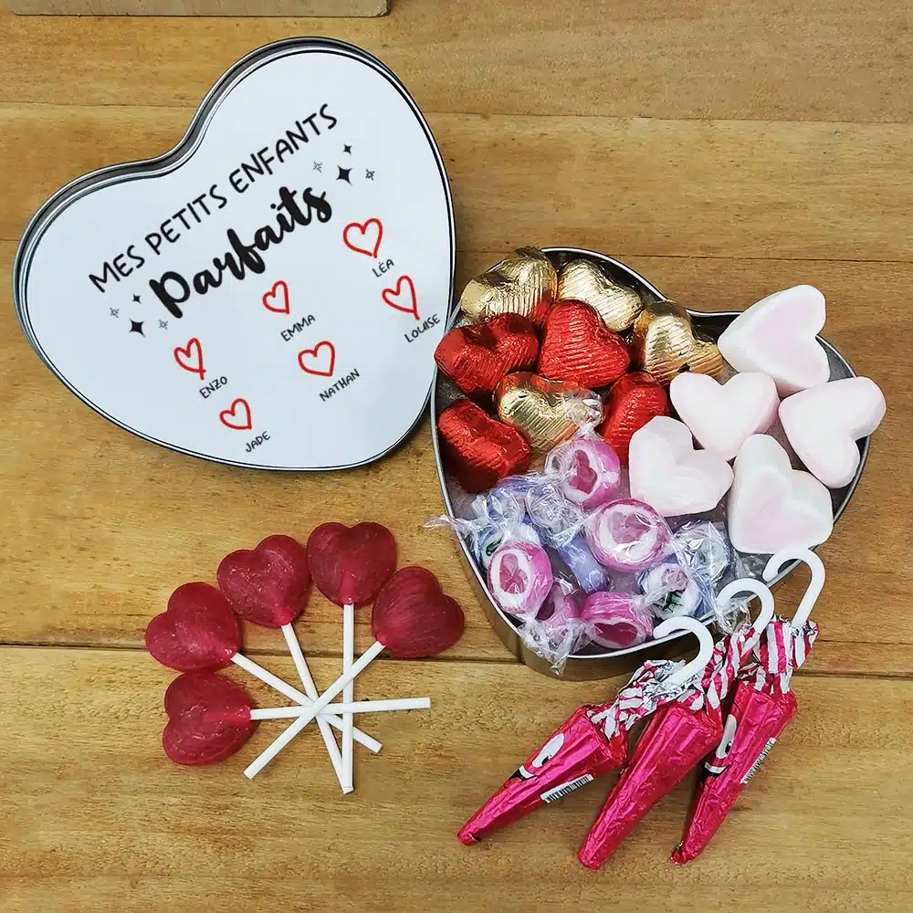 Coffret Bonbon Coeur “Mes petits enfants parfaits” personnalisé (Boîte en métal)