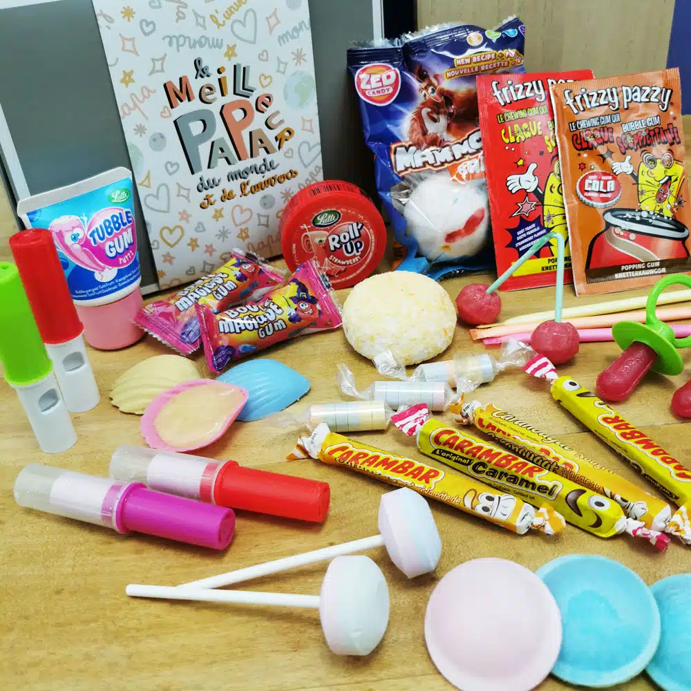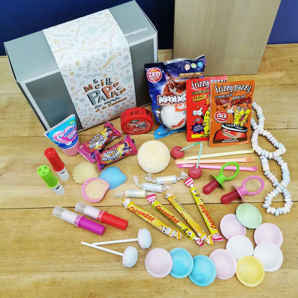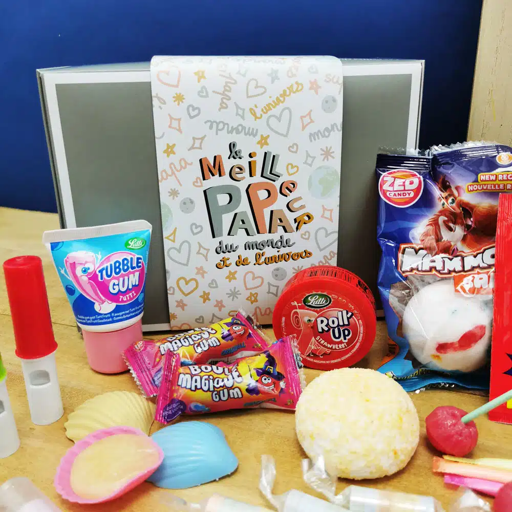 Coffret Bonbon Papa – “Le meilleur papa du monde et de l’univers” : coffret bonbon rétro années 80
