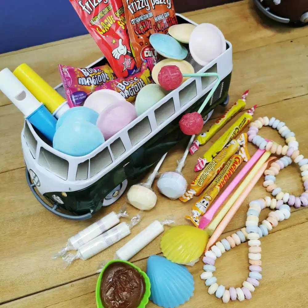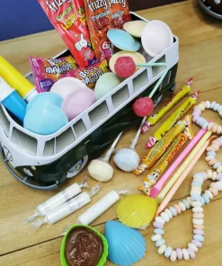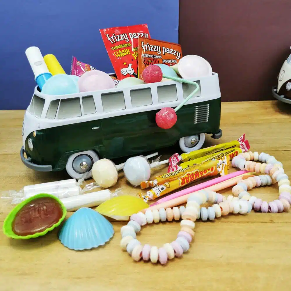 Vous êtes nostalgique des années 80, et fan du célèbre Combi Volkswagen ? Vous allez adorer cette voiture en métal avec son couvercle amovible permettant de stocker des trésors. Et chez NostalGift, les trésors, ce sont de savoureux bonbons des années rétro avec les soucoupes, les pailles acidulés, les colliers dextrose, les frizzy pazzy…. Laissez-vous tenter par ce super objet deco !