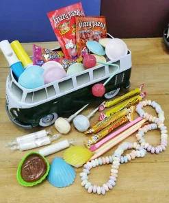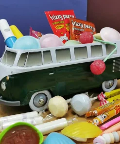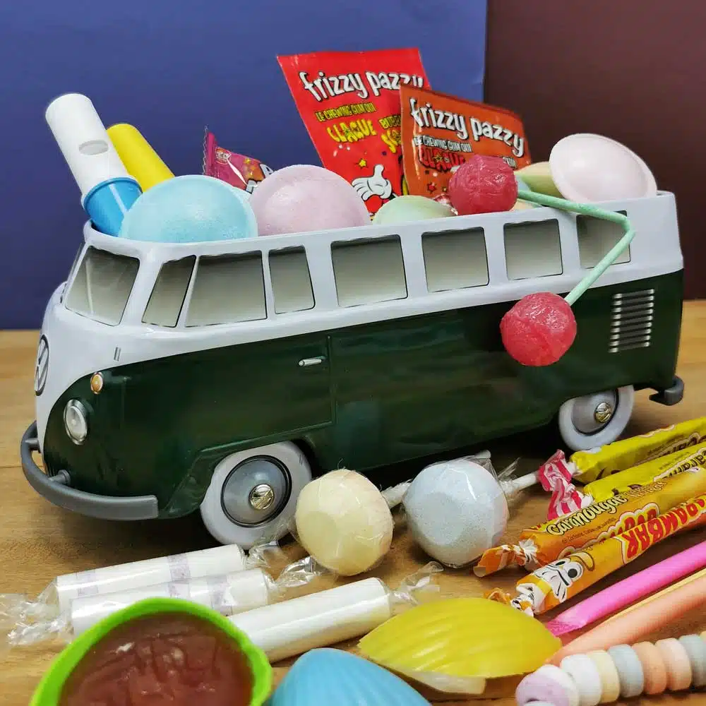 Coffret bonbon Volkswagen Combi vert en métal rempli de bonbons rétros 80