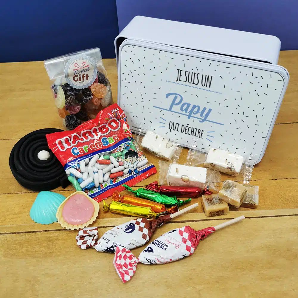 Un cadeau parfait pour la fête des grands pères, un anniversaire ou Noël, où retrouver les saveurs d’antan avec les confiseries et se replonger dans ses souvenirs grâce au design rétro de la boîte. La boîte est réutilisable, et parfaite pour stocker les petits souvenirs.