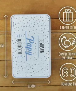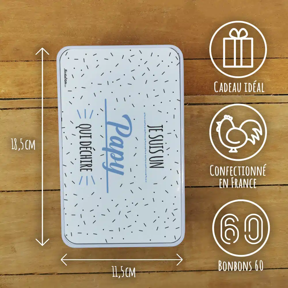Bonbons des années 60 “Je suis un papy qui déchire” (Boîte en métal)