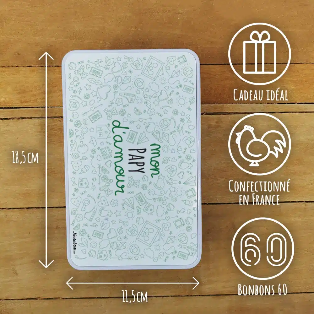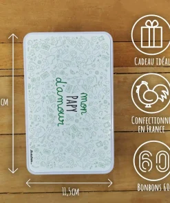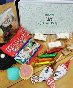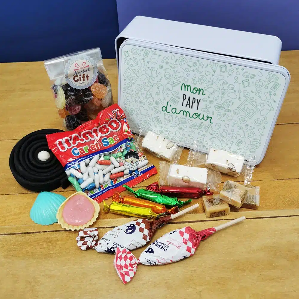 Un cadeau parfait pour Fête des grands pères, Anniversaire où retrouver les saveurs d’antan avec les confiseries et se replonger dans ses souvenirs grâce au design rétro de la boîte. La boîte est réutilisable, et parfaite pour stocker les petits souvenirs.