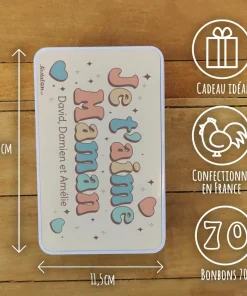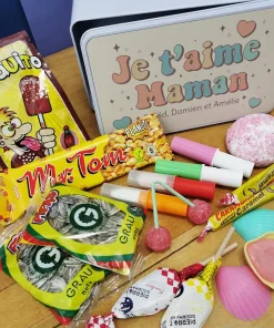 Bonbons des années 70 “Je t’aime maman” (Boîte en métal) – cadeau personnalisable