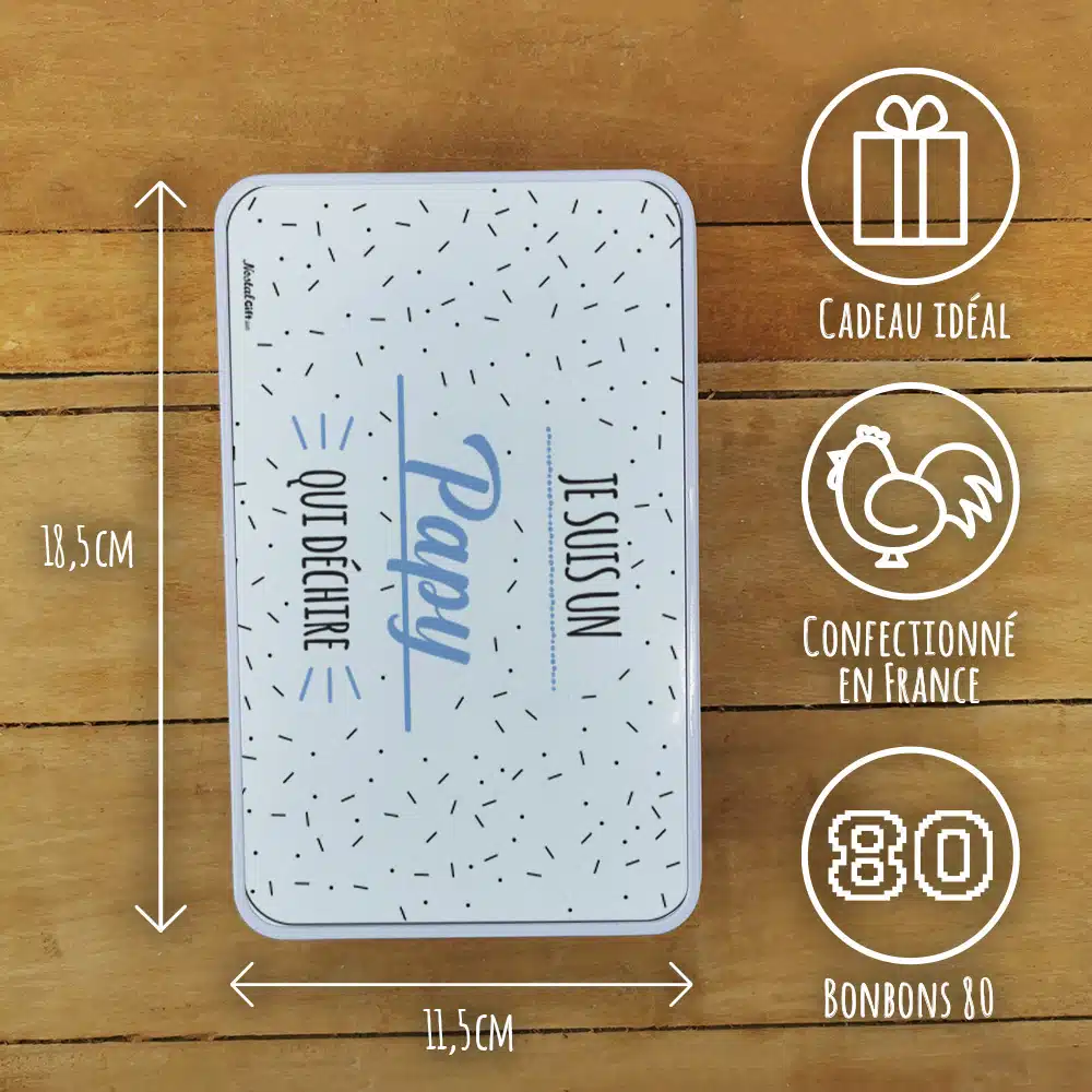 Bonbons des années 80 “Je suis un papy qui déchire” (Boîte en métal)