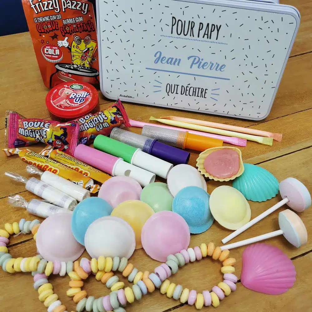 ![Coffret bonbons des années 80 “Pour papy […] qui déchire”(Boîte en métal) – cadeau personnalisé – Image 3](https://happyfeats.org/wp-content/uploads/2025/08/cadeau-Fete-des-grands-peres-Anniversaire-pour-papy-personnalise-qui-dechire-coffret-annee-80-bonbons-1.webp)