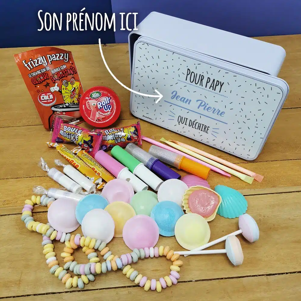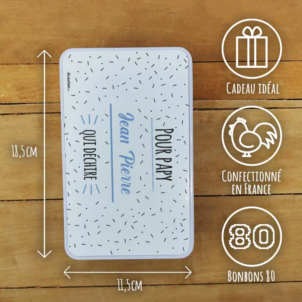 ![Coffret bonbons des années 80 “Pour papy […] qui déchire”(Boîte en métal) – cadeau personnalisé – Image 4](https://happyfeats.org/wp-content/uploads/2025/08/cadeau-Fete-des-grands-peres-Anniversaire-pour-papy-personnalise-qui-dechire-coffret-annee-80-informations-1.webp)