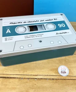 Livré dans une boîte à chocolat en métal “cassette des années 80”