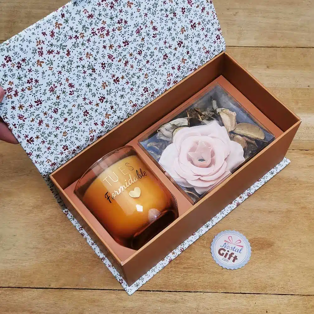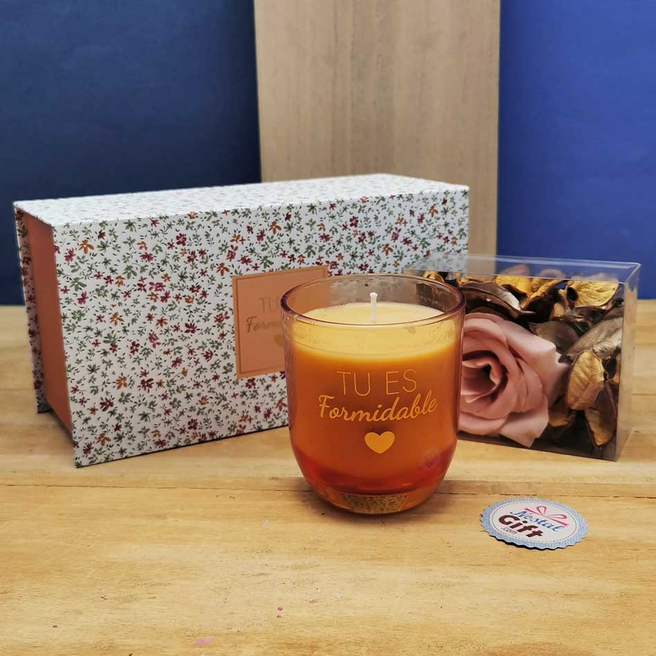 Coffret cadeau “Tu es formidable” – Bougie + Pot pourri magnolia