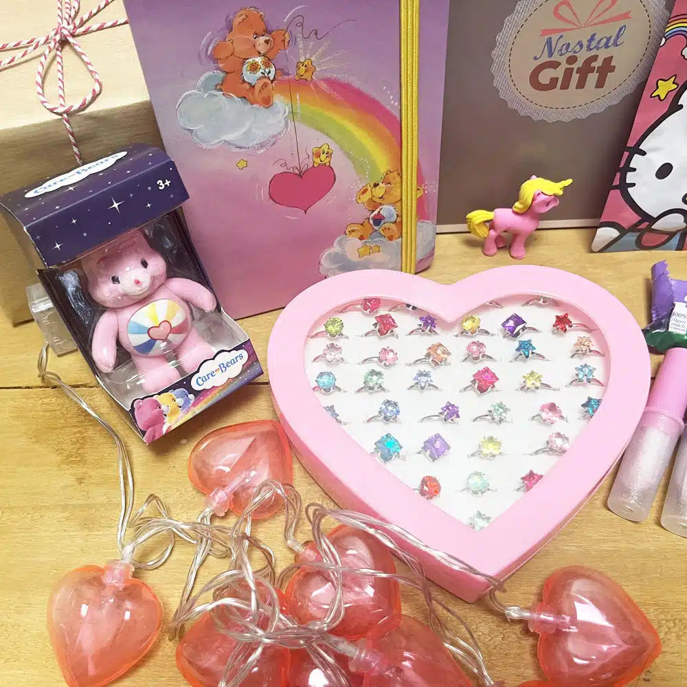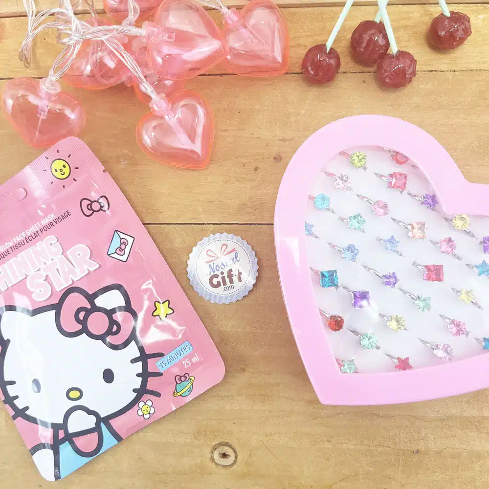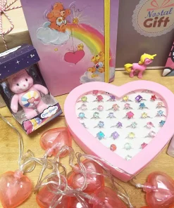 – Un lot de 36 bagues dans leur boîte en forme de coeur rose