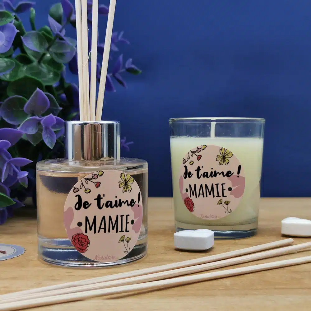 Coffret cadeau Mamie – Set de diffuseur de parfum + Bougie – “Je t’aime Mamie”