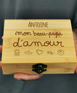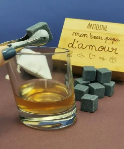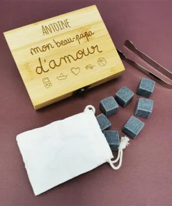 Remerciez votre beau-papa avec ce très joli coffret en bois personnalisé rempli de 9 pierres glaçon. Avec son pochon et sa pince, ce coffret de très bonne qualité est complet et fera tout son effet pour un anniversaire, la fête des pères ou bien Noël.