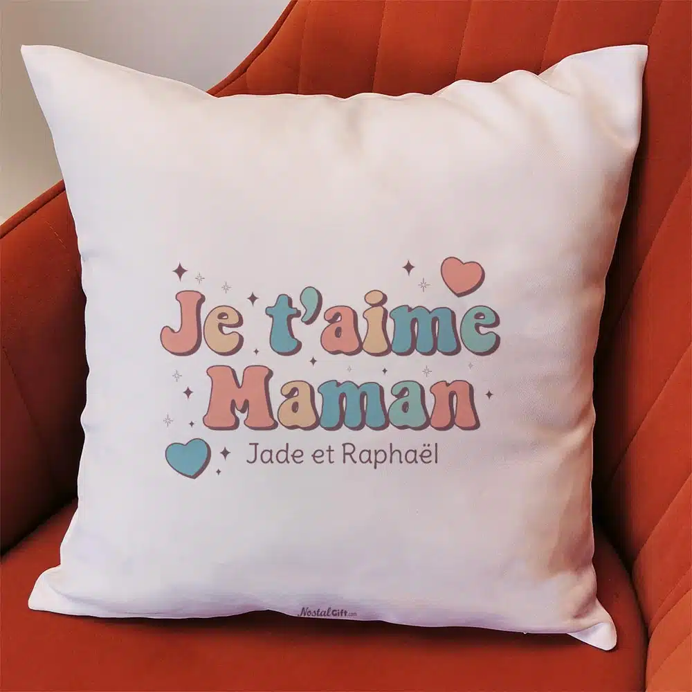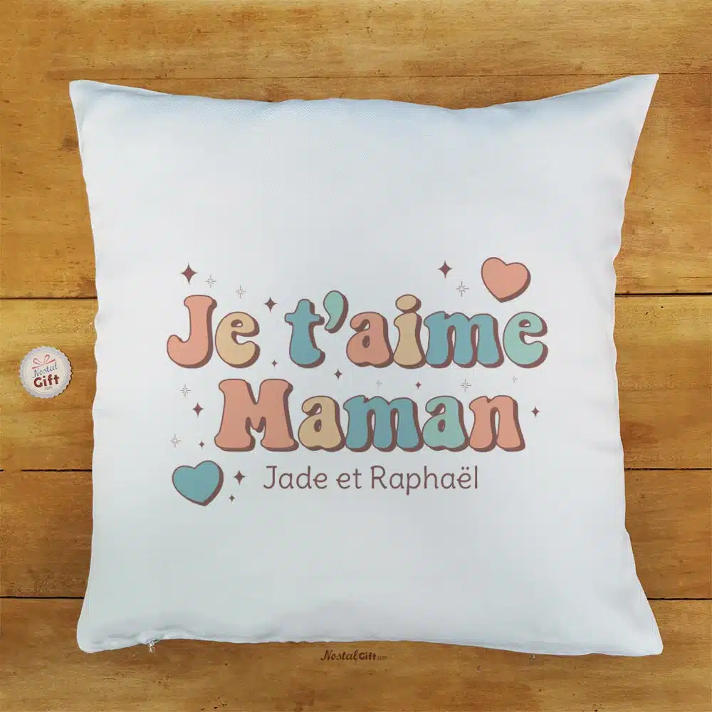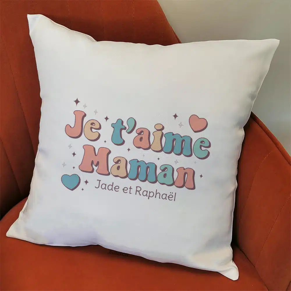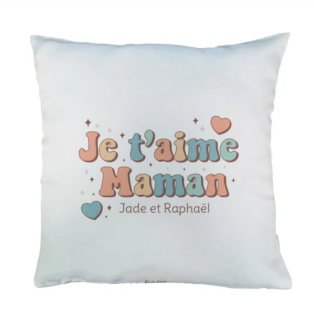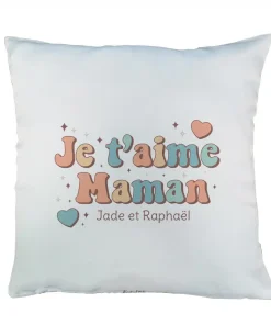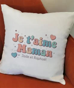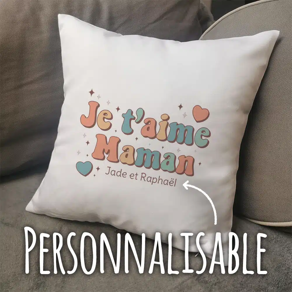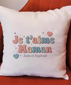 Coussin “Je t’aime Maman” personnalisable – Cadeau maman