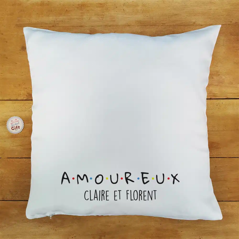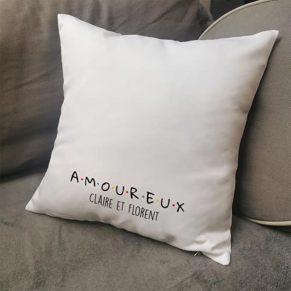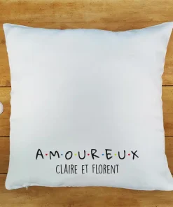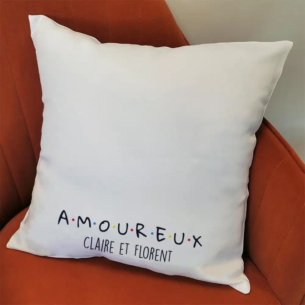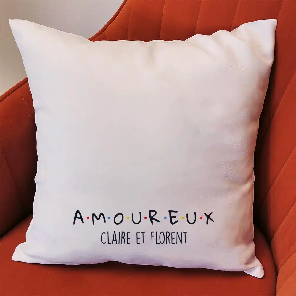Coussin personnalisé AMOUREUX – 40×40 cm – Cadeau Saint Valentin