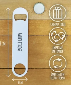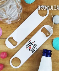 Offrez un cadeau original pour votre copain pour la Saint Valentin avec notre ouvre bouteille. Sur ce décapsuleur en inox, il est écrit ” My love “sur l’avant et vos prénoms sur l’arrière.
