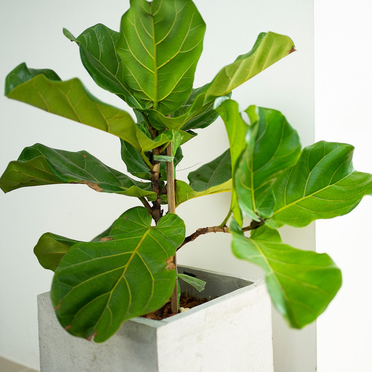 Pour son entretien, placez-le à la lumière indirecte, évitant une exposition directe au soleil. Arrosez modérément, en laissant le sol sécher légèrement entre les arrosages. Le Ficus Lyrata est sensible aux changements, alors maintenez des conditions stables.