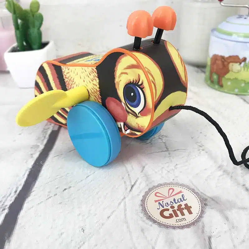 Un jouet à tirer pour accompagner joyeusement les premiers pas de bébé. Ses ailes s’activent lorsque l’abeille se déplace et émettent un son caractéristique pour éveiller et amuser l’enfant.