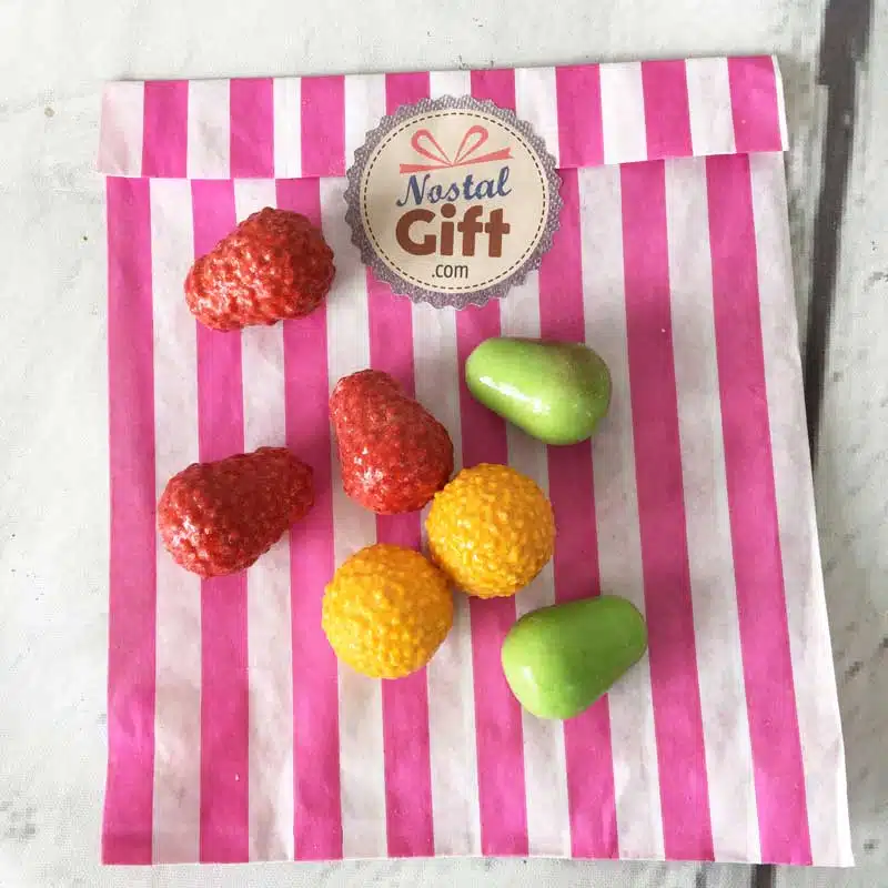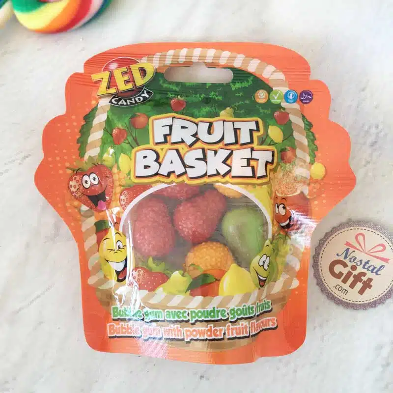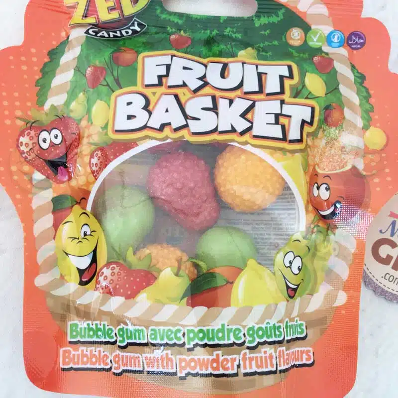 Fruit Basket – Bubble Gum goût fruits- Quantité : 1 sachet de 35g- Emballage : Livré dans un sachet bonbon (avec les autres bonbons emballés de votre commande).-