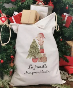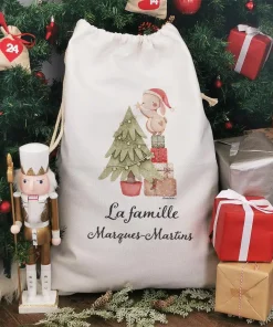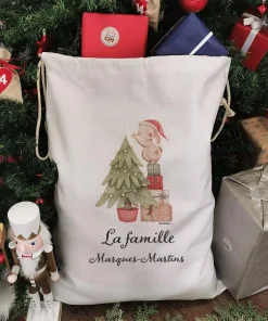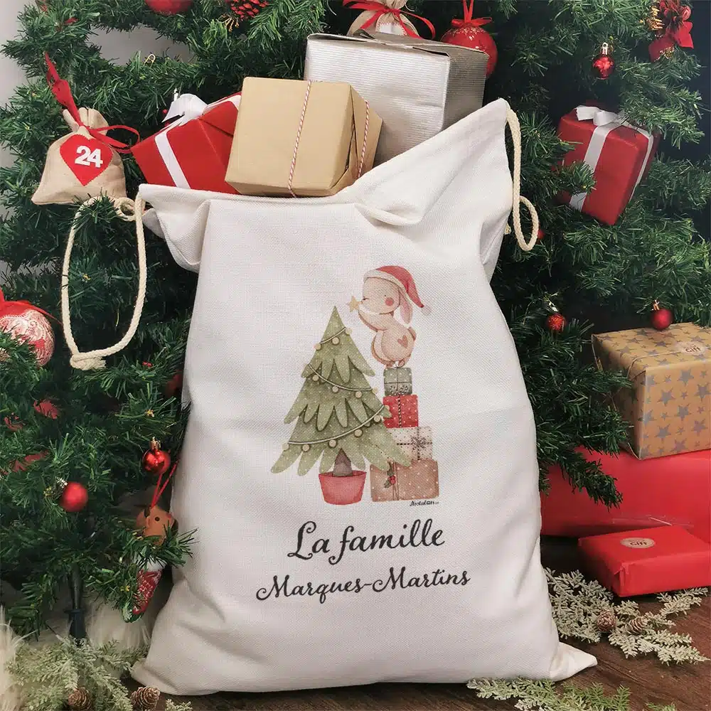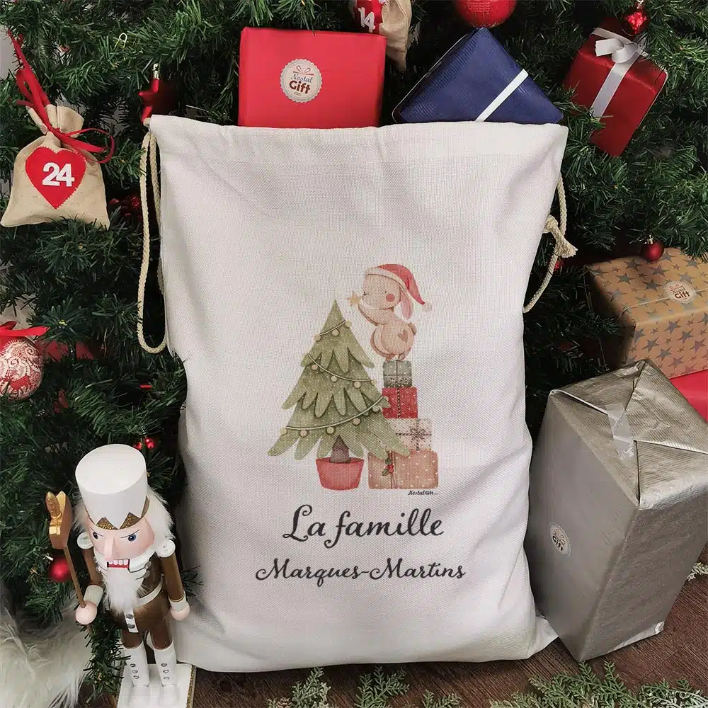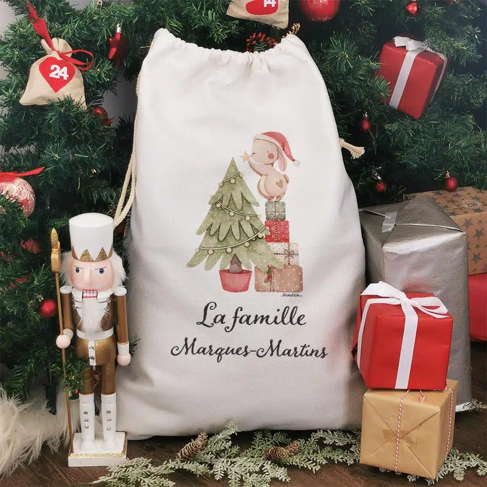 Hotte de Noël personnalisée – “La famille ..” – Lapin et son sapin