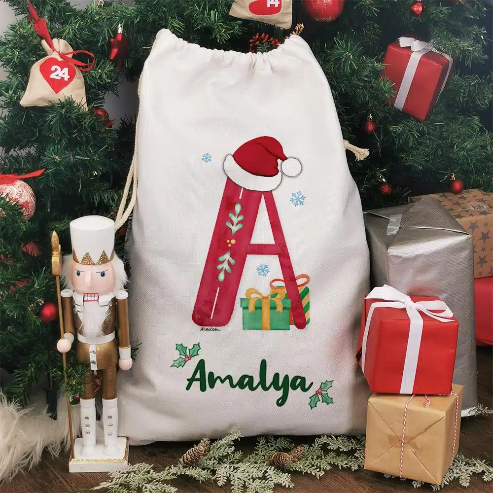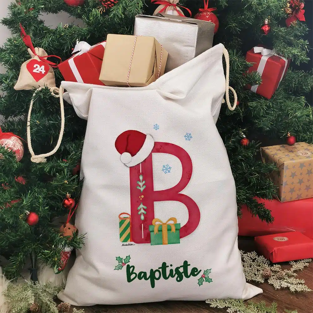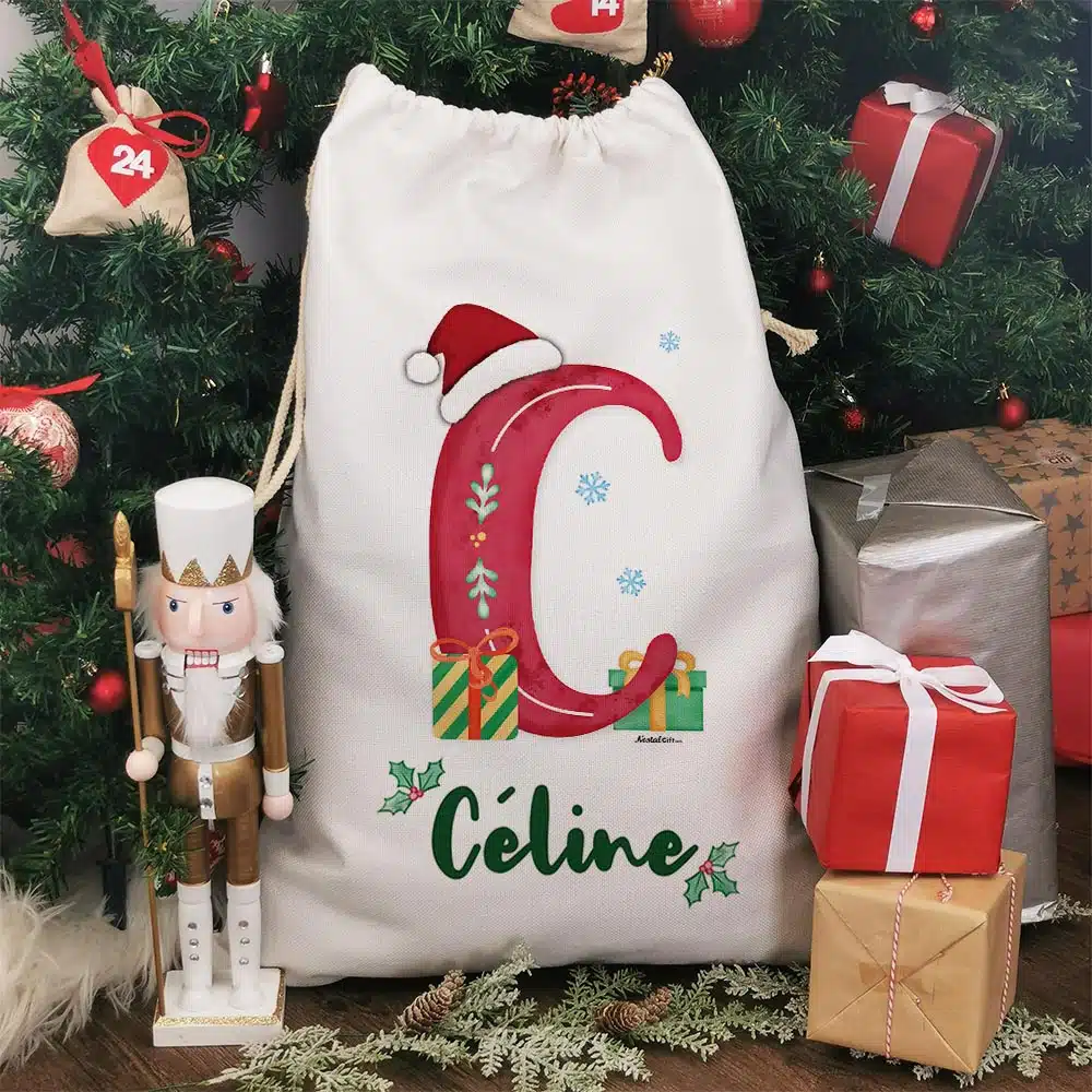 Hotte de Noël personnalisée – Lettre et prénom