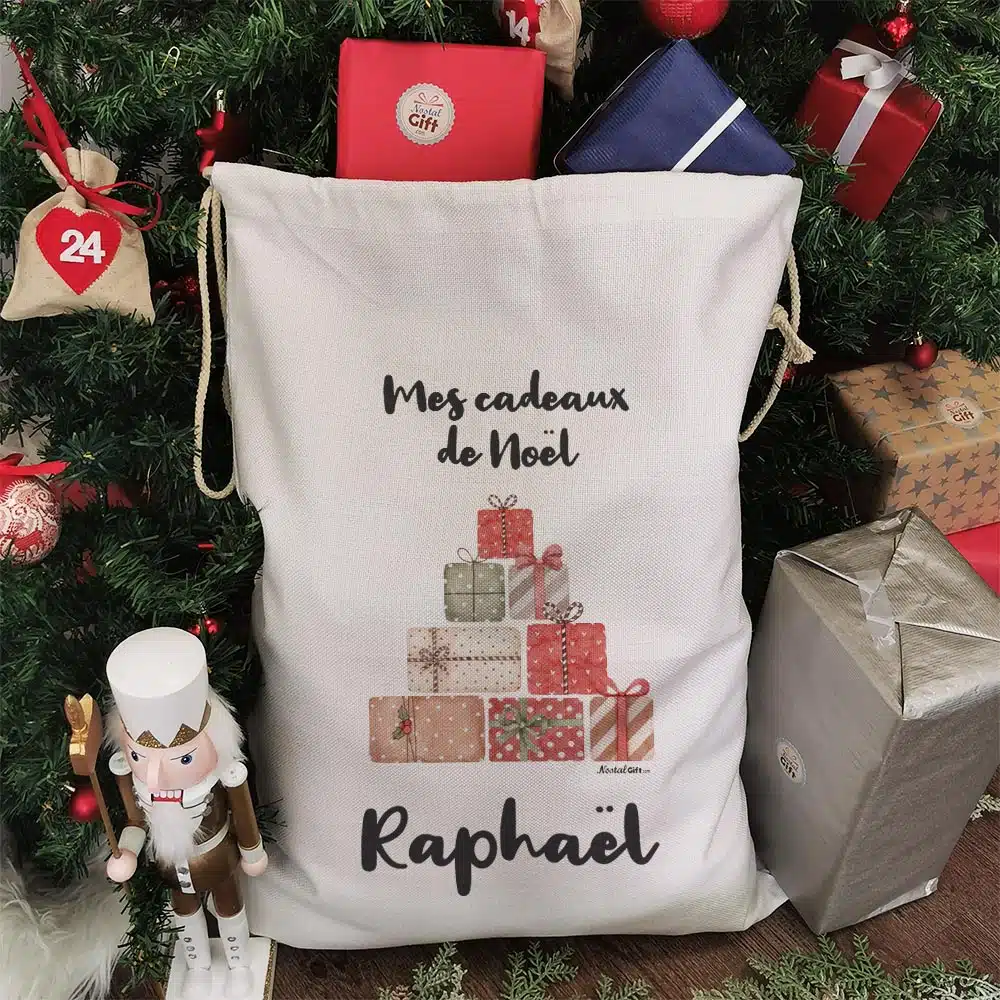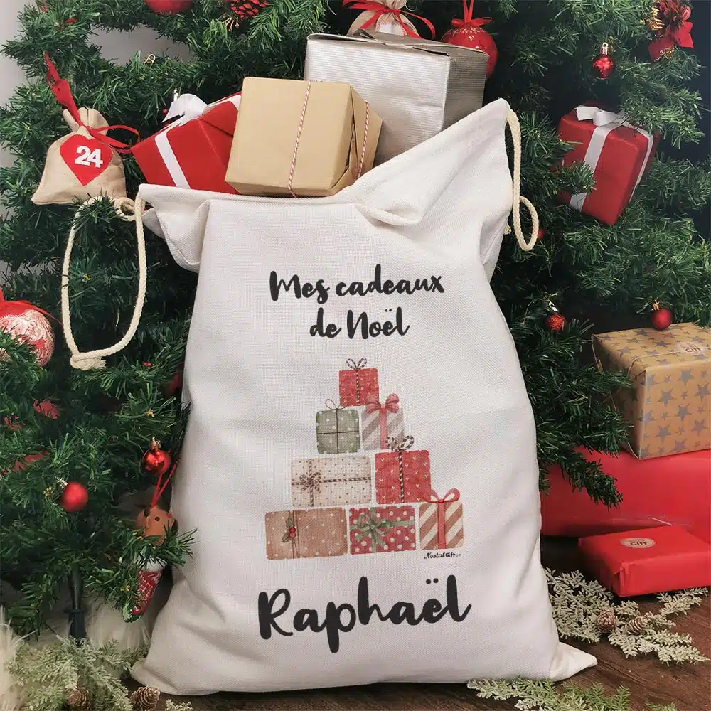 Hotte de Noël personnalisée – Mes cadeaux de Noël