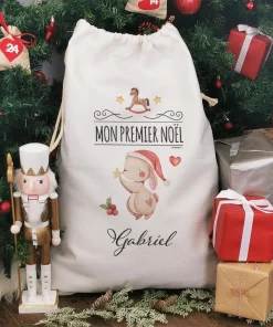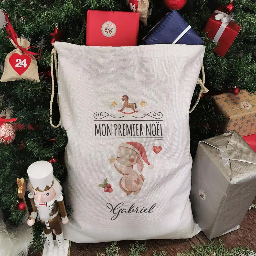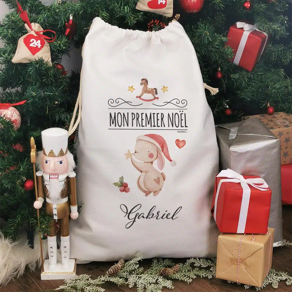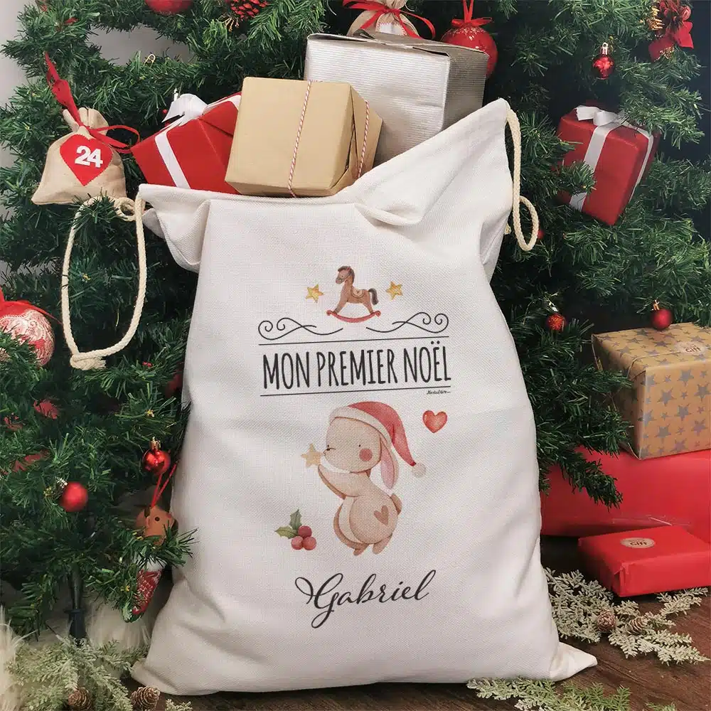 Hotte de Noël personnalisée – Mon premier Noël – Lapin de noël