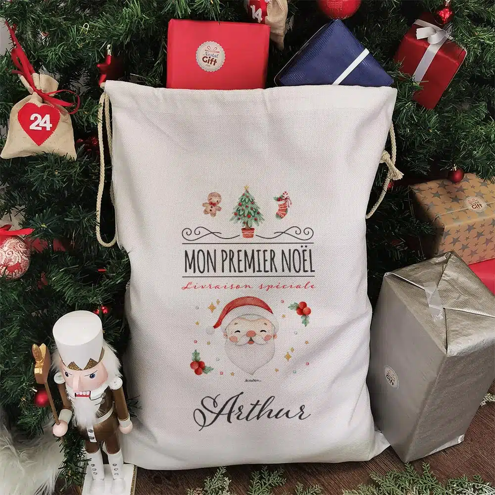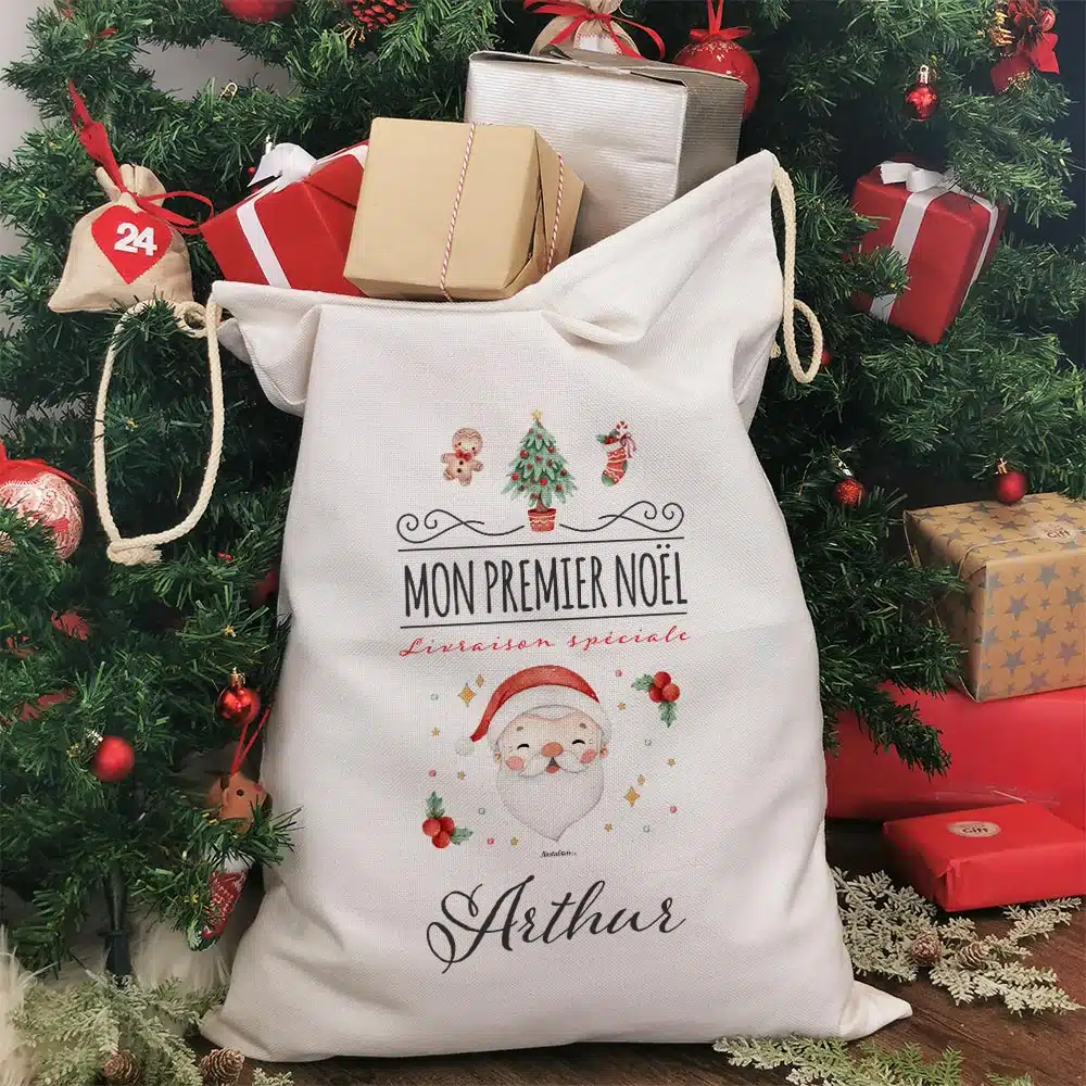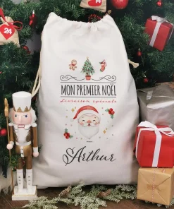 Hotte de Noël personnalisée – Mon premier Noël – Père Noël
