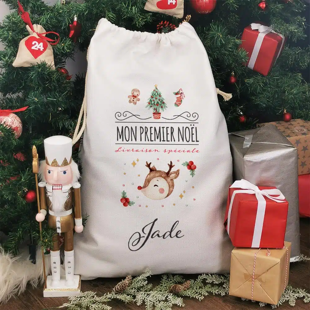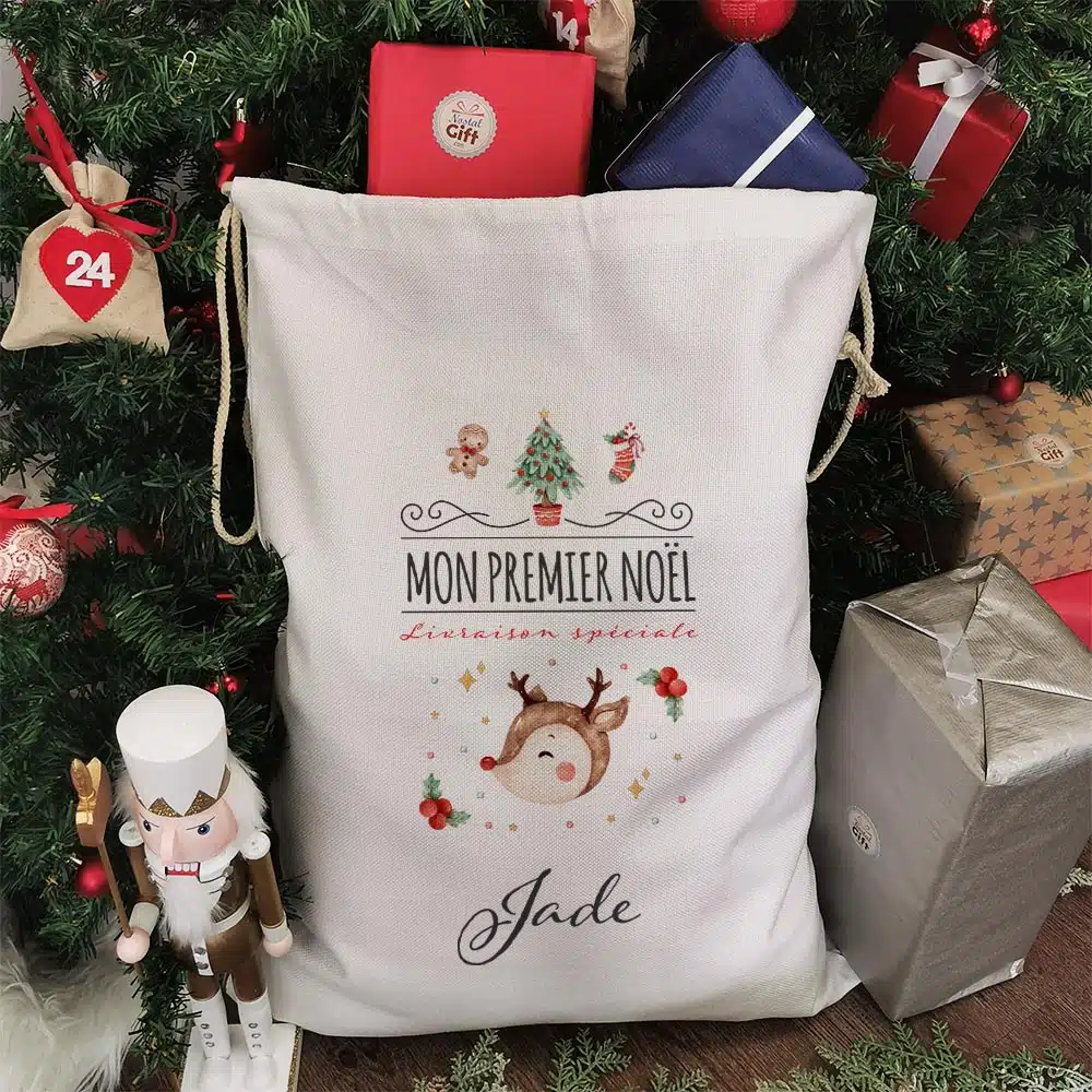 Hotte de Noël personnalisée – Mon premier Noël – Renne