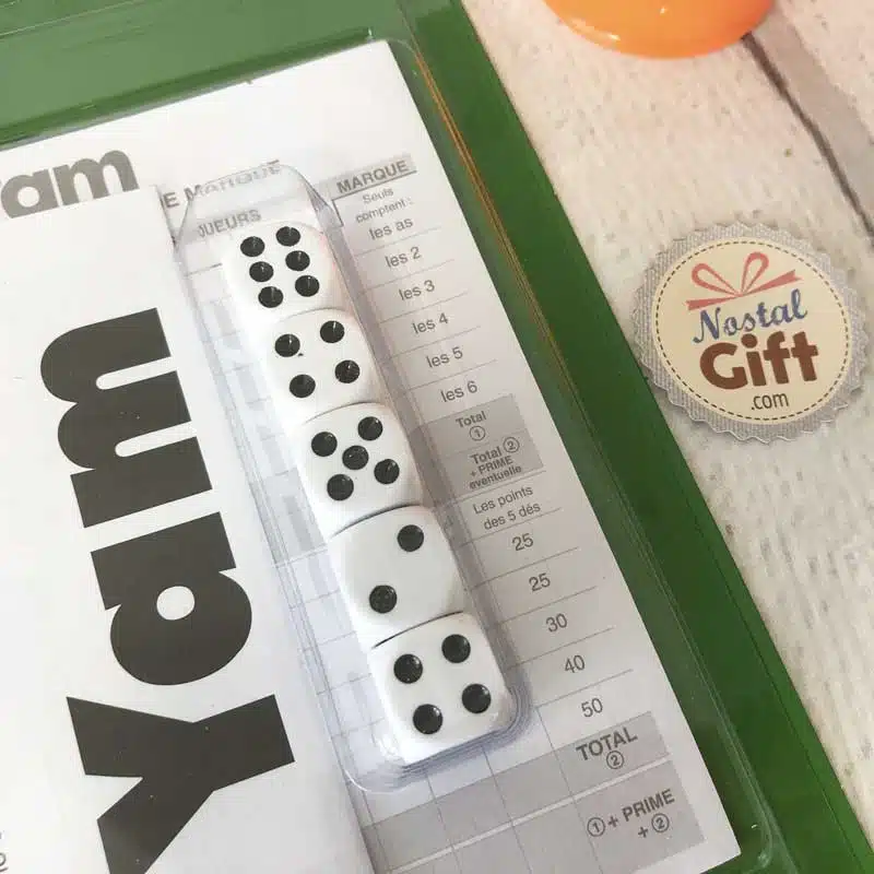 - Contient : 5 dés, une notice, un bloc de feuilles des points
