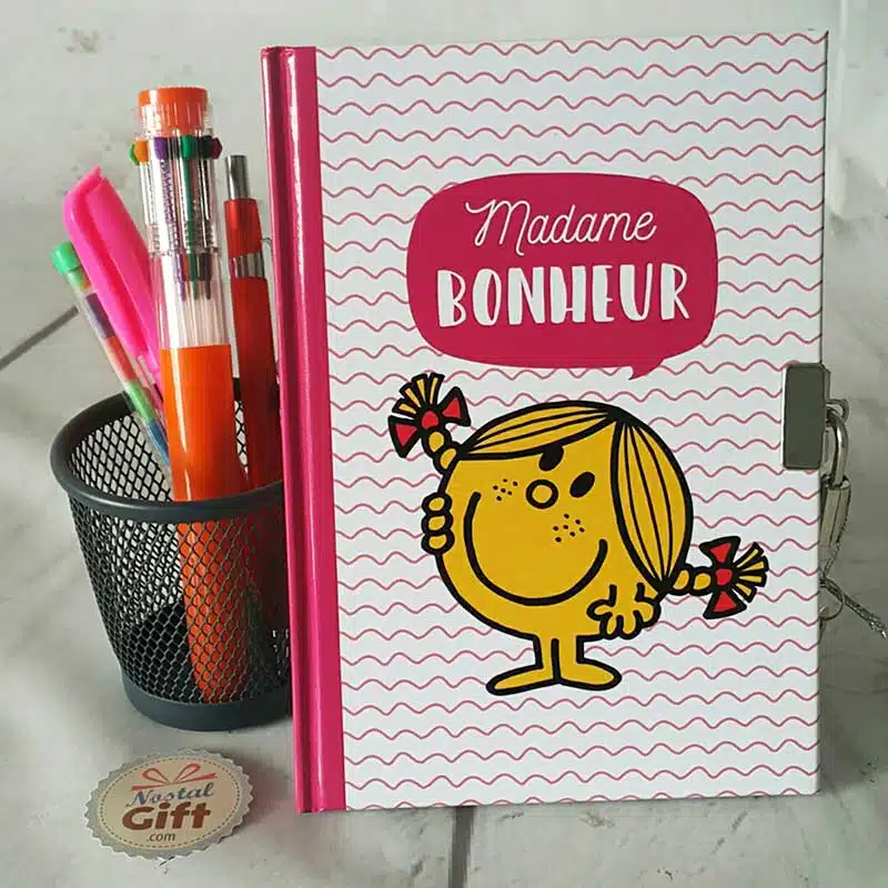 Ce journal intime Monsieur Madame vous permettra d’écrire tous les secrets que vous voulez garder précieusement ! Avec le cadenas, impossible qu’un(e) curieux(se) puisse s’en emparer. Choisissez la Madame que vous souhaitez parmi 4 modèles différents, et écrivez tout ce qui vous passe par la tête !