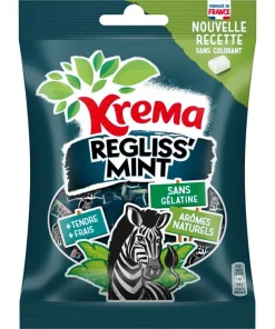 Découvre les tendres bonbons Kréma Régliss’Mint, un délicieux mélange de réglisse et de menthe au goût très rafraîchissant et gourmand.