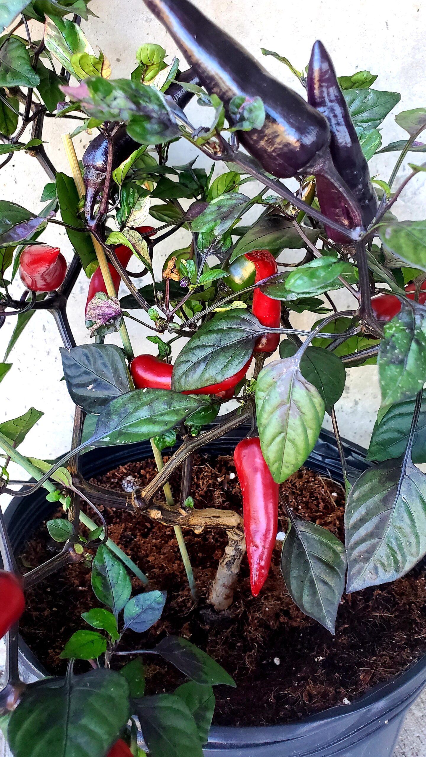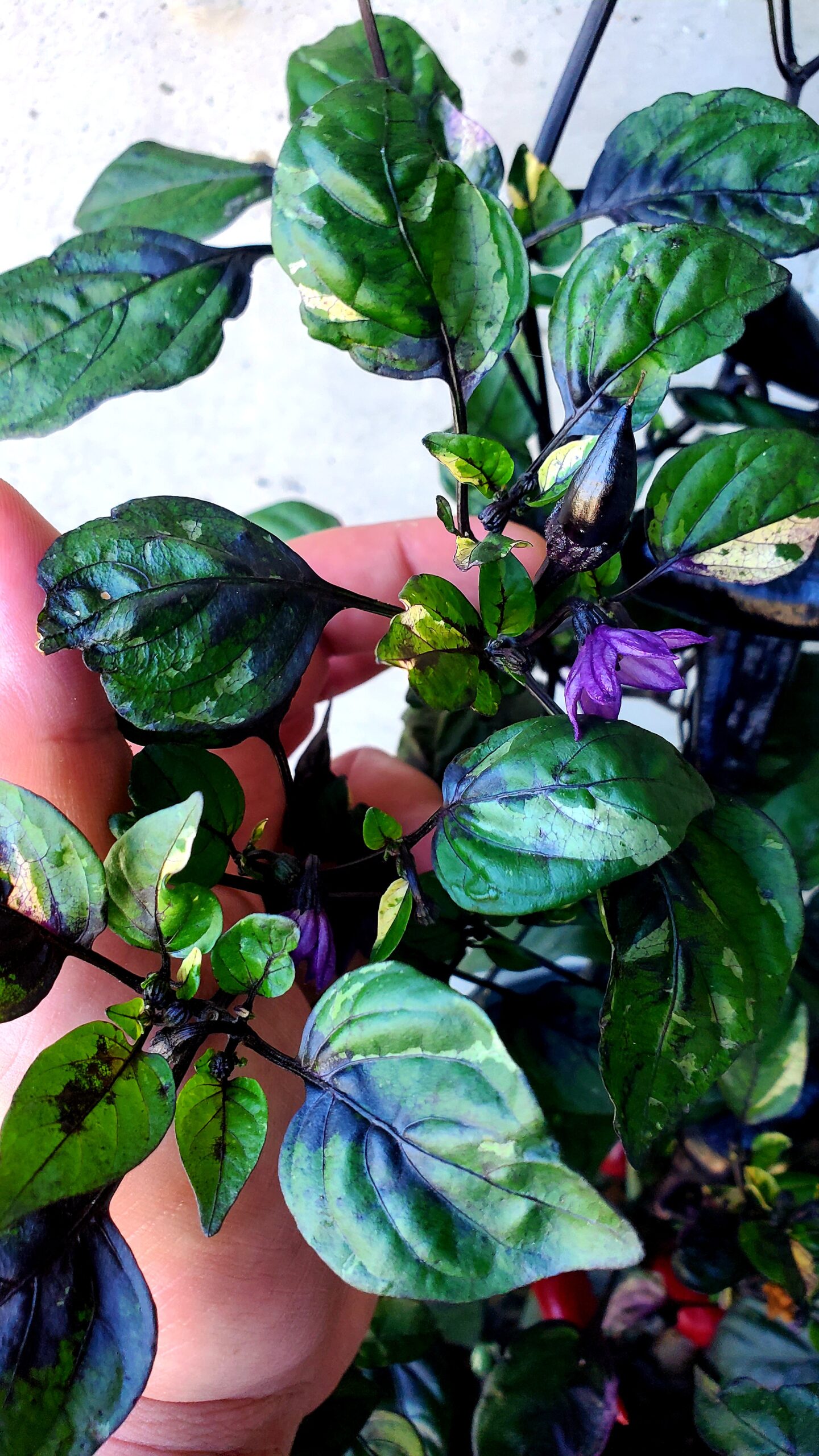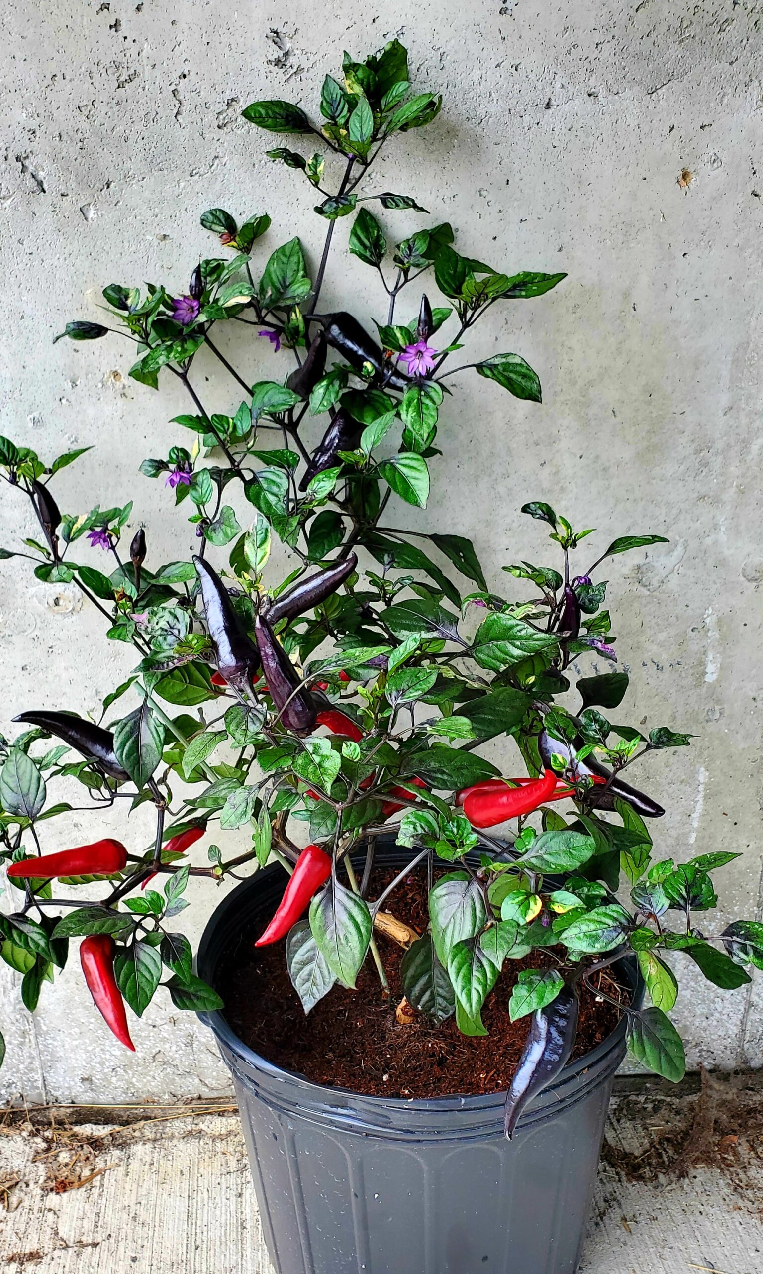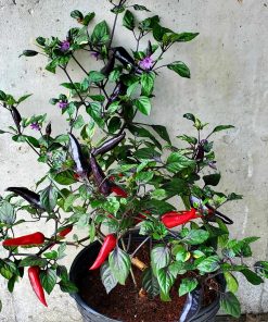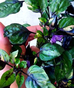 Issu des créations de Semence Canada, le Piment à Math se distingue par sa variété de couleurs chatoyantes. Violettes pour les fleurs, mauves voire noires pour les fruits et un kaléidoscope de nuances jusqu’au rouge Rubis pour mûrir. En plus de sa splendeur, cette variété est incroyablement prolifique et combine l’élégance de son feuillage panaché à une grande productivité.