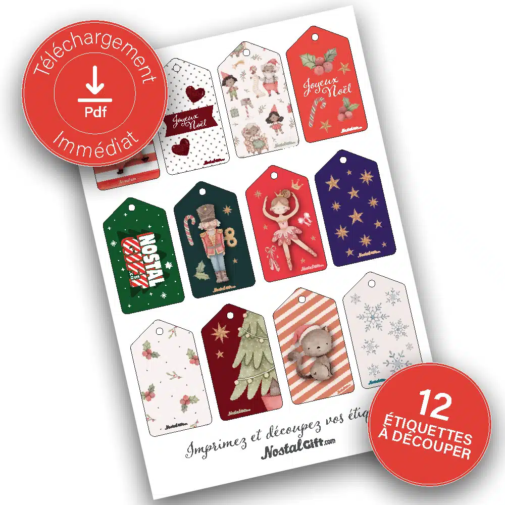 Préparez-vous à donner une touche amusante avec ces 12 étiquettes perforées a imprimer pour vos cadeaux de Noël. Ajouter ce produit à votre panier, après la confirmation d’achat, la feuille A4 sera disponible dans votre compte NostalGift.com, il ne vous restera plus qu’a imprimer puis écrire le nom du destinataire sur chaque étiquette.