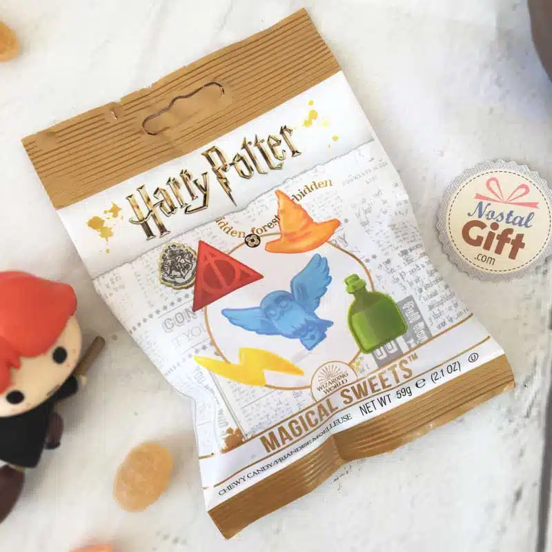 Fan de Harry Potter ? Ces bonbons sont faits pour vous. Choisissez la forme que vous voulez : eclair, bouteille, choipeaux, chouette, reliques et dégustez les un par un.