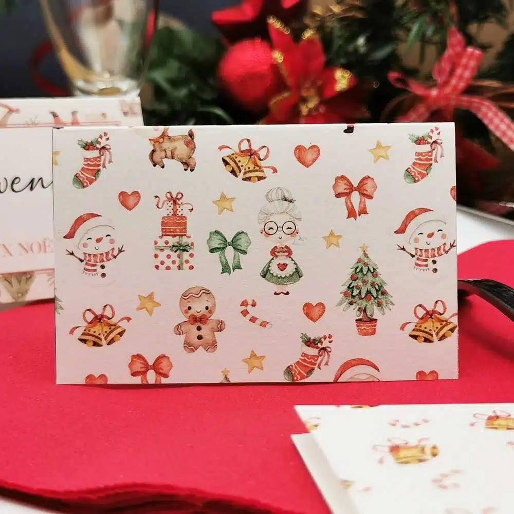 Transformez votre table de Noël en un chef-d’œuvre grâce à nos marque-places personnalisables à imprimer. Élégants et festifs, ces marque-places sont parfaits pour accueillir vos invités avec style tout en leur offrant une attention personnelle.